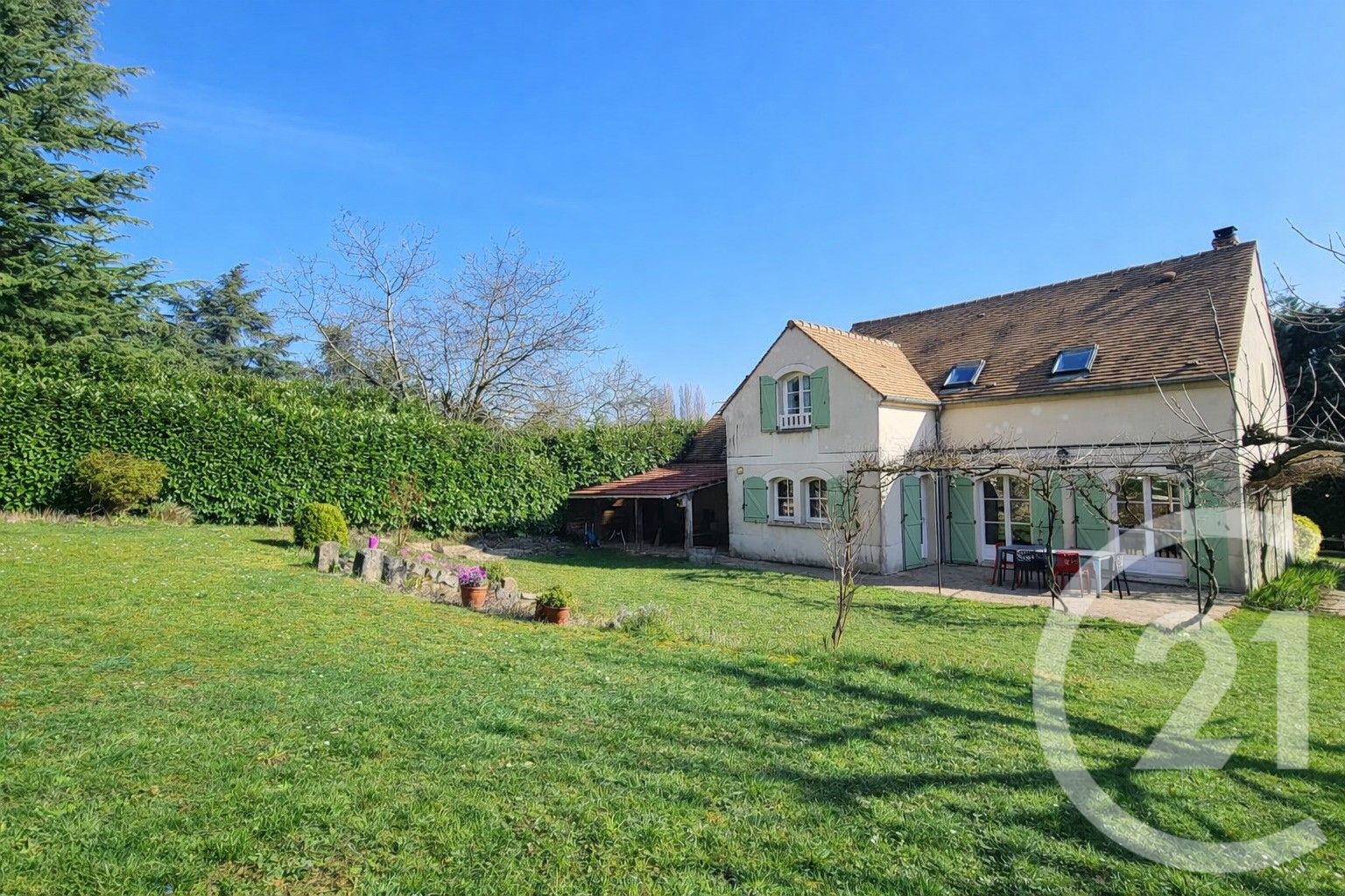 Dans le quartier recherché de Jouy le Comte à Parmain, découvrez une maison où l'on profite pleinement du calme, de la lumière et d'un magnifique jardin arboré de 1 600 m² avec arbres fruitiers.
